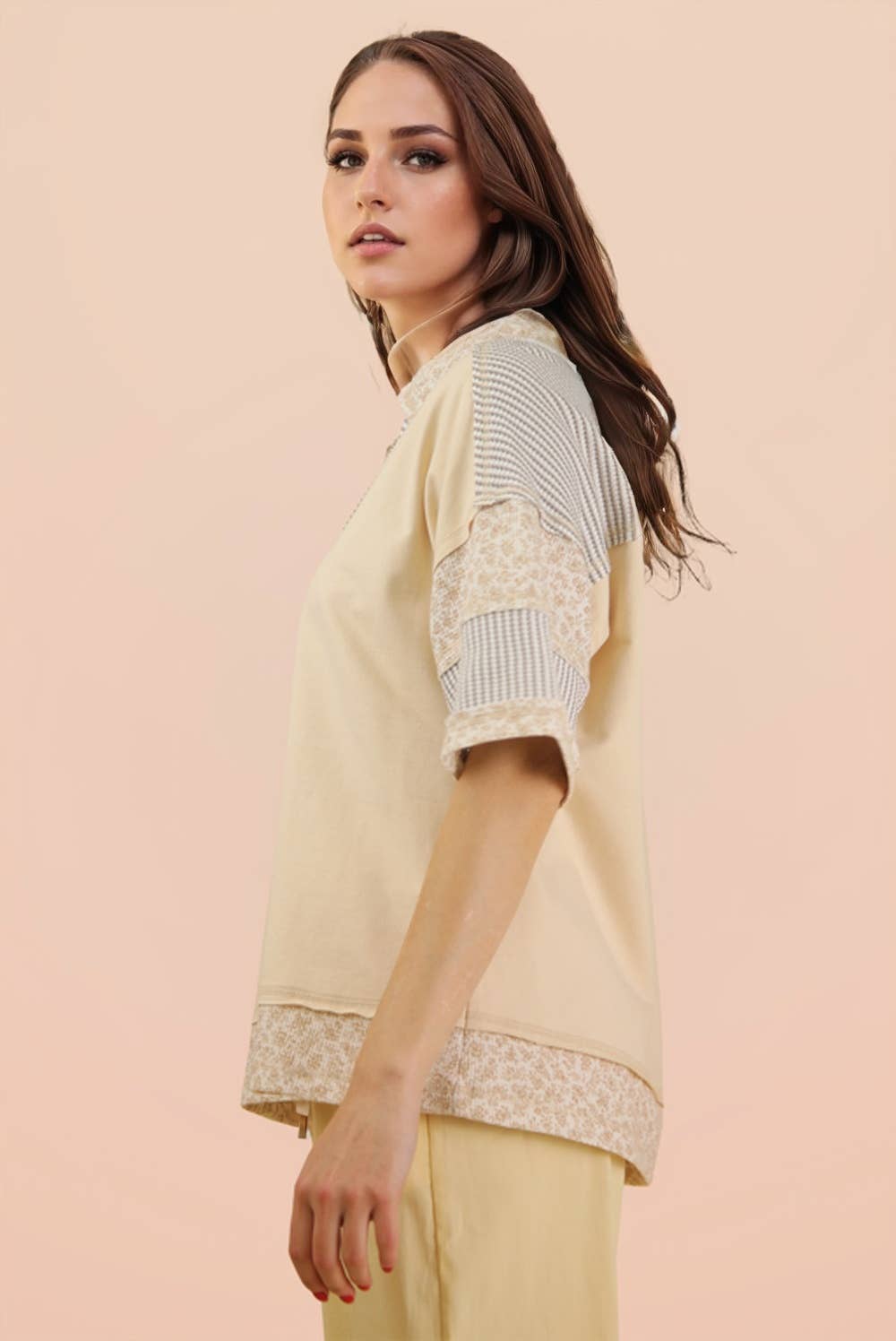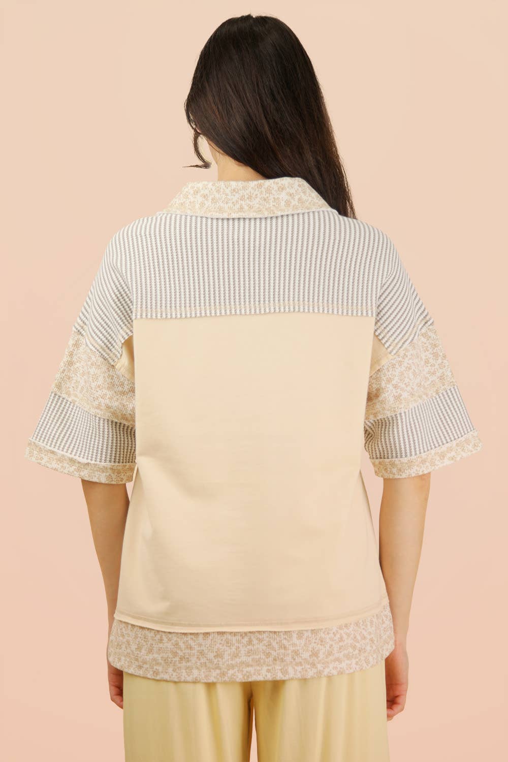 - Oversized Half Button Down Collared Knit Top